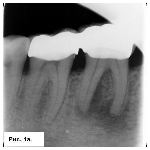 Первый динамический контроль проведен через 6 мес. На рентгенограмме отмечалось полное заживление перирадикулярного процесса (рис. 3b). Самым важным аспектом в лечение апикального периодонтита является контроль инфекции. Но также очень важно, какими качествами обладает обтурационный материал.